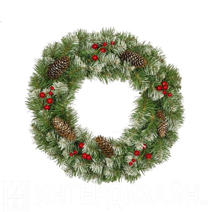 Рождественский венок "Нарядный" с декором заснеженный 40 см., Кол-во веточек - 90 шт. - Отзывы