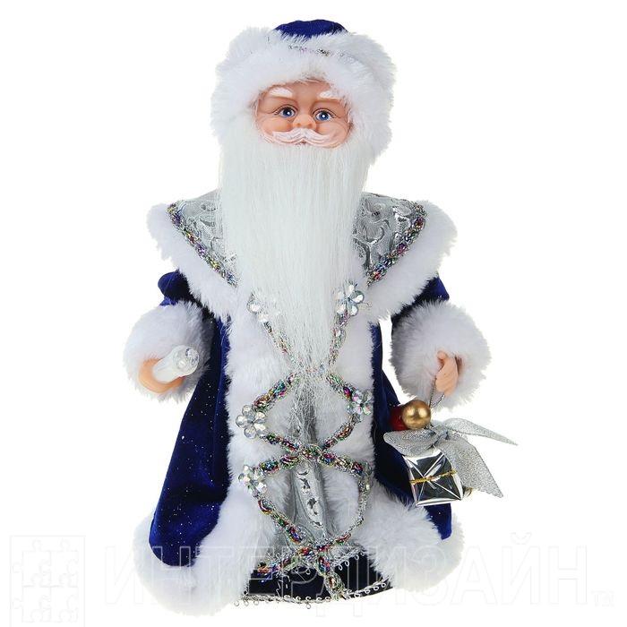 Дед Мороз "Шик", в бело-синей шубе, со свечой 30см 1390660С