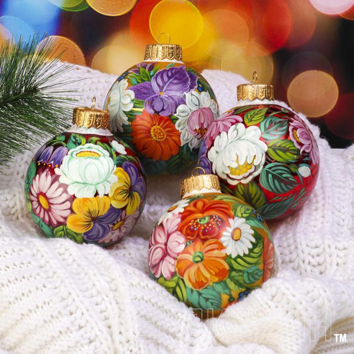 Набор ёлочных шаров ручной работы Букет цветов в стиле жостово 4шт 10 см - Отзывы