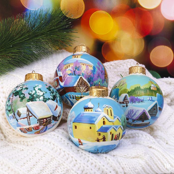 Набор ёлочных шаров ручной работы Утро 4шт 10 см - Отзывы