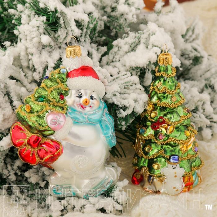 Набор новогодних игрушек Снеговик на коньках с ёлкой, ёлка 2794498