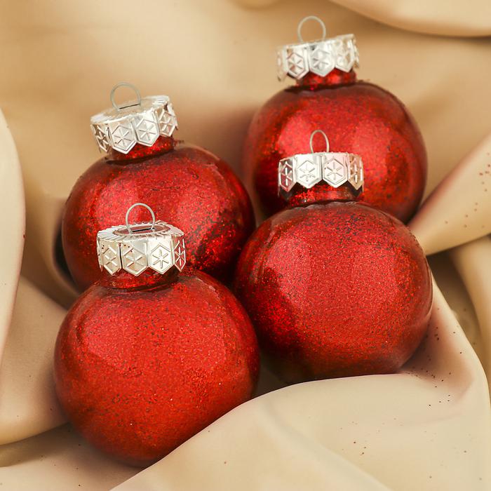 Набор шаров пластик 4 шт d-6 см Блестки красный 3505685