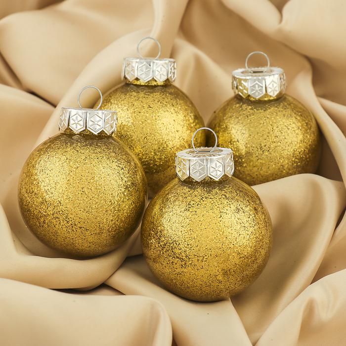 Набор шаров пластик 2 шт d-6 см Блестки золото 3505687