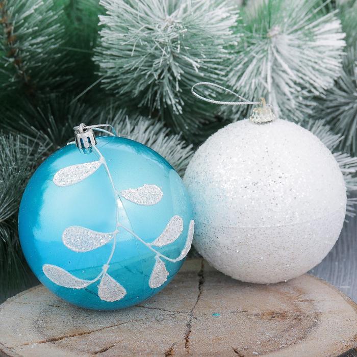 Набор шаров пластик Веточка d-10 см 4 шт бело голубой 2356976
