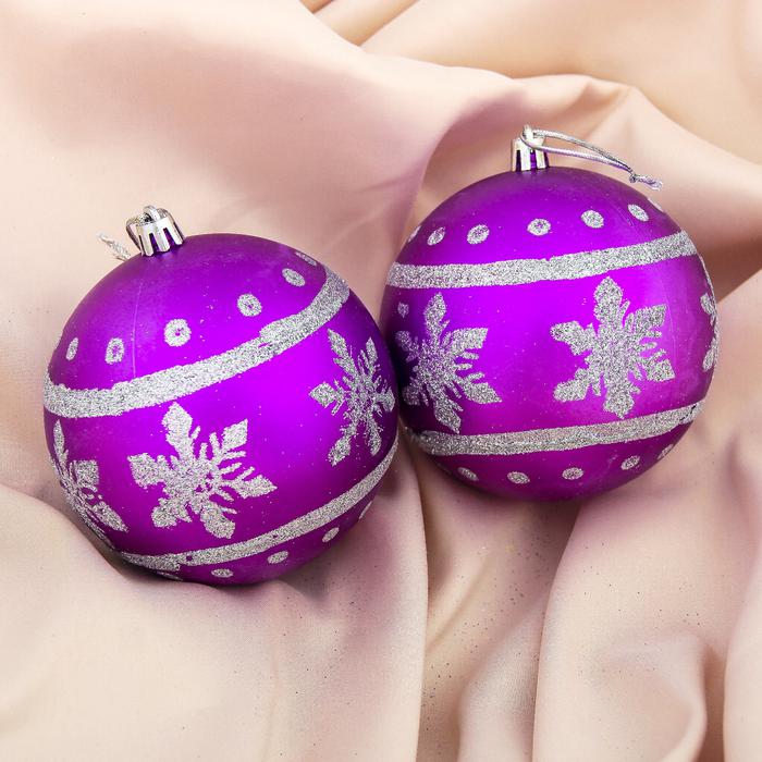 Набор шаров пластик d-10 см 2 шт Парад снежинок фиолет 3531484