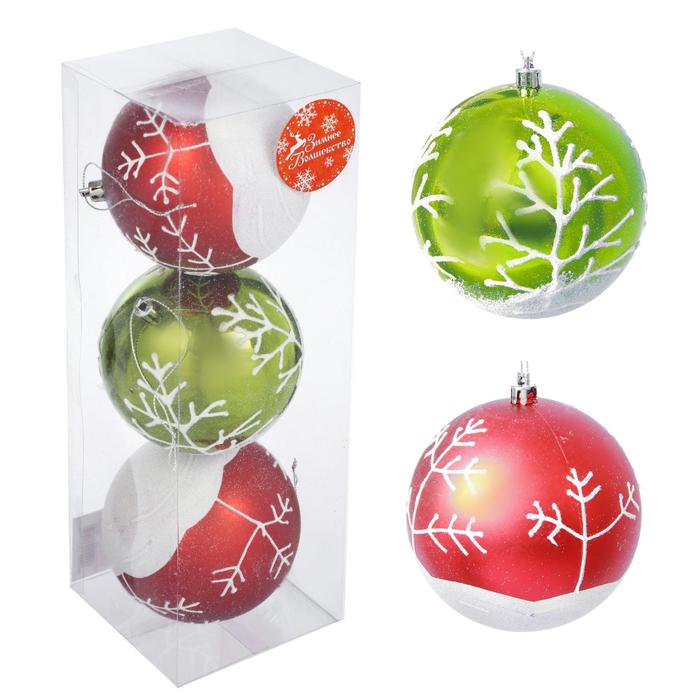 Набор шаров пластик d-10 см 3 шт зимнее деревце - Описание