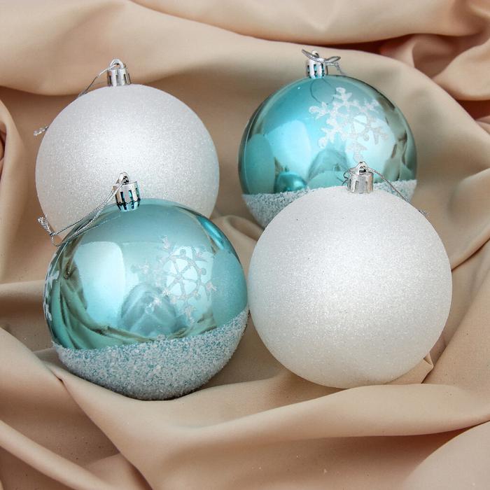 Набор шаров пластик d-10 см 4 шт Снег снежинка 3259793