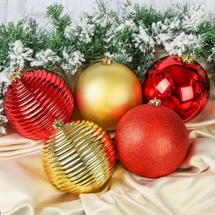 Набор шаров пластик d-15 см 5 шт Барбара красно золотой 3259693