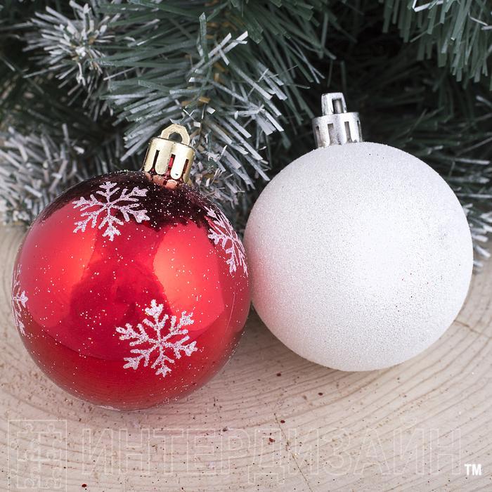 Набор шаров пластик d-5,5 см 6 шт Снежинки бело-красный - Описание