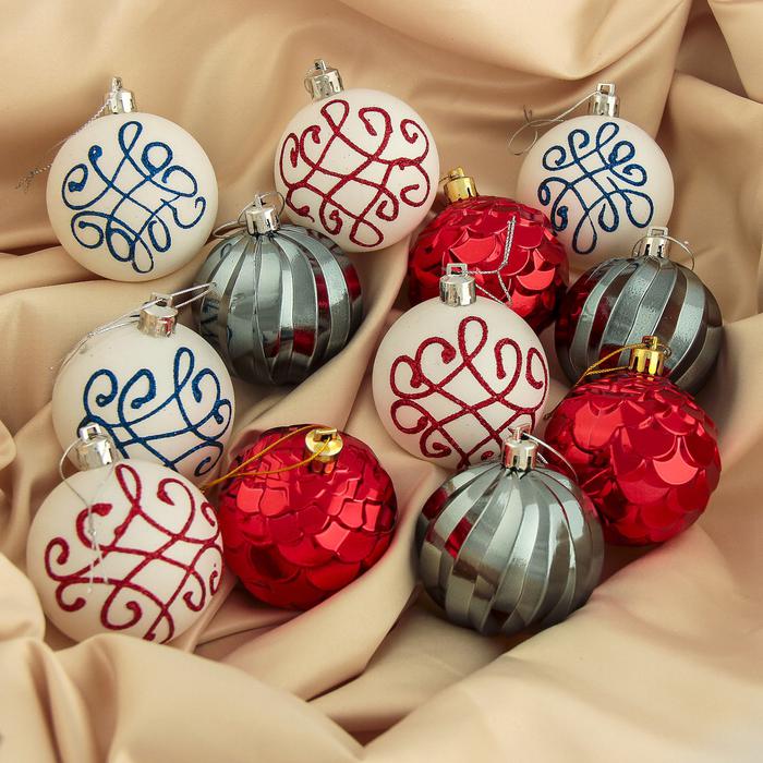 Набор шаров пластик d-6 см 12 шт Элит три цвета 3249261