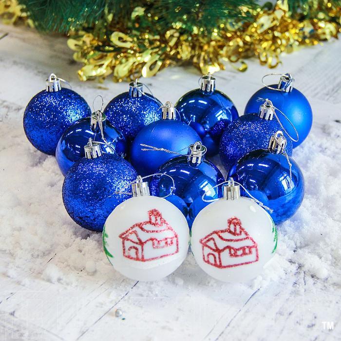 Набор шаров пластик d-6 см 12 шт Кьюзо синий 2178446