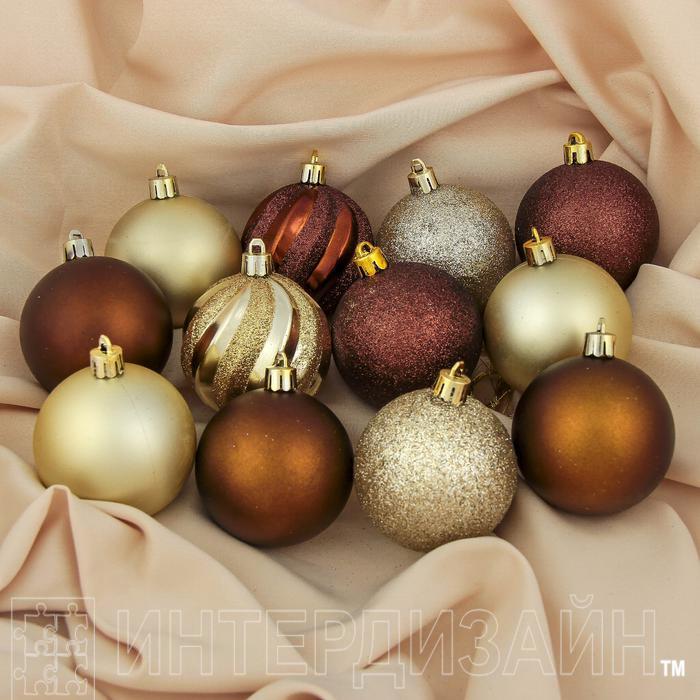 Набор шаров пластик d-6 см 12 шт Улыбка кофейный с золотом 3276727
