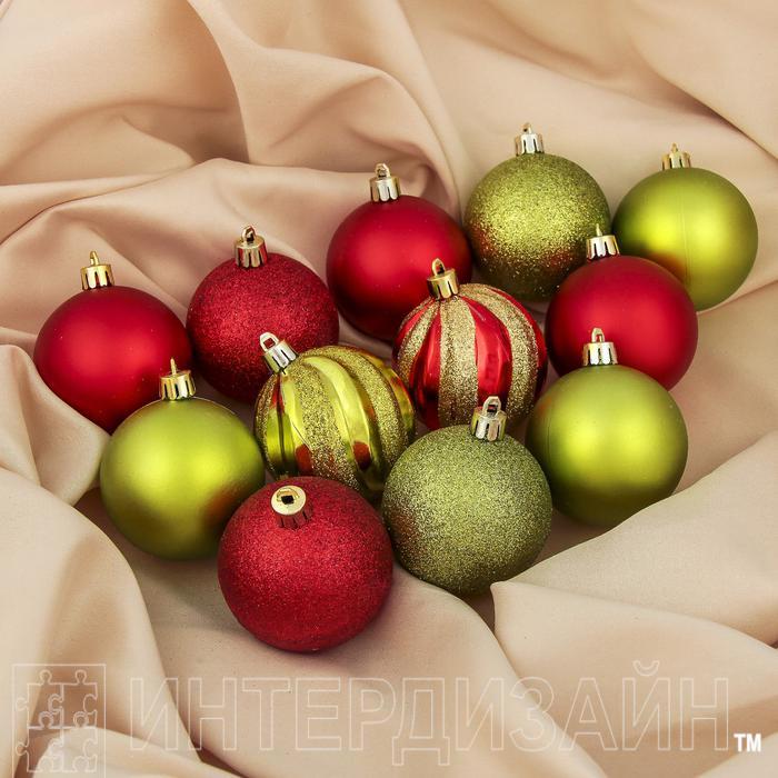 Набор шаров пластик d-6 см 12 шт Улыбка красно-зеленый 3276728