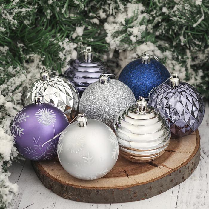 Набор шаров пластик d-7 см 16 шт Серпантин серебро-фиолет 3249268