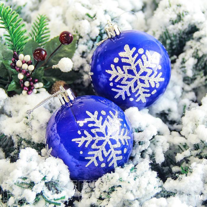 Набор шаров пластик d-7 см 2 шт Снежинка капель синий - Описание