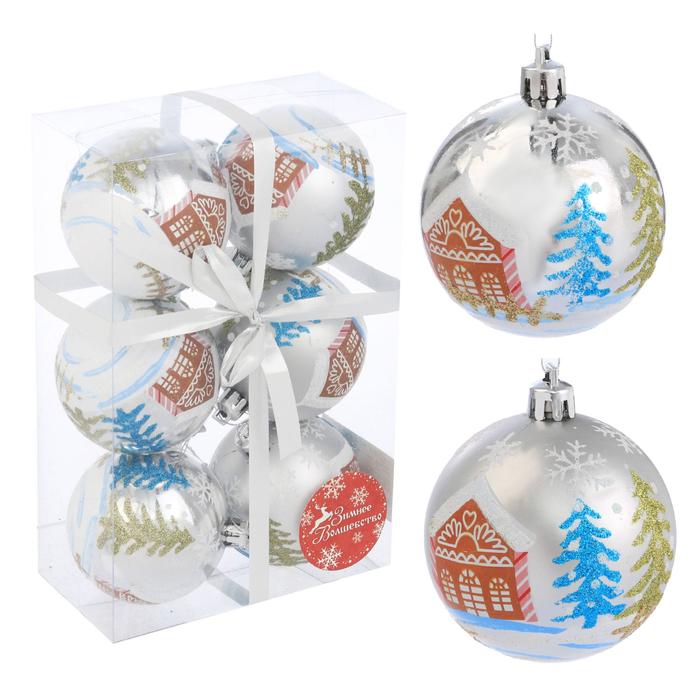 Набор шаров пластик d-7 см 6 шт домик белый 2122959
