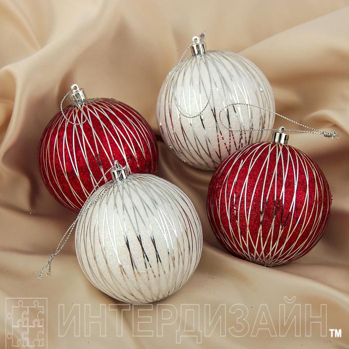 Набор шаров пластик d-8 см 4 шт Бесконечность бело-красный 3259841