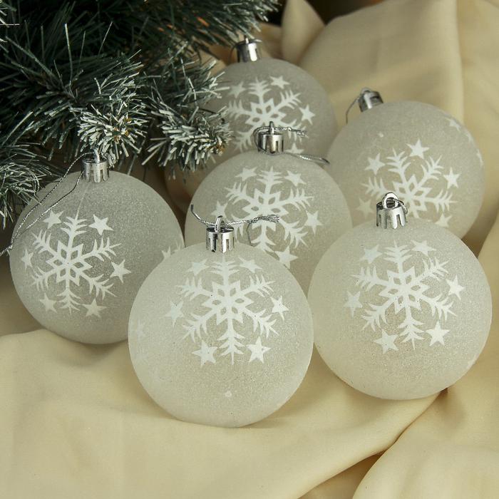 Набор шаров пластик d-8 см 6 шт Изморозь снежинка 3259796