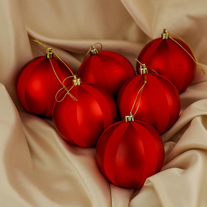 Набор шаров пластик d-8 см 6 шт Лимма красный бархат 3276632