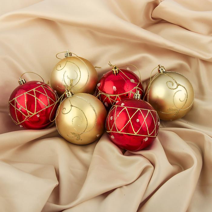 Набор шаров пластик d-8 см 6 шт Лютия сеточка 3259865