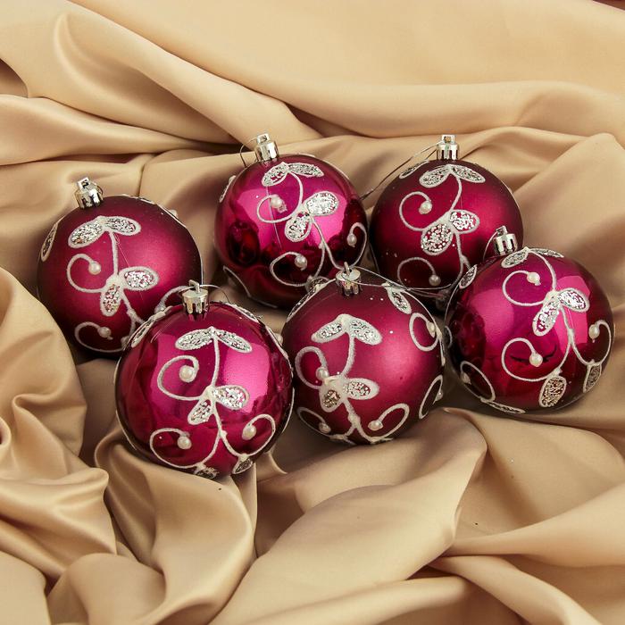 Набор шаров пластик d-8 см 6 шт Жемчужная веточка бордо 3249245