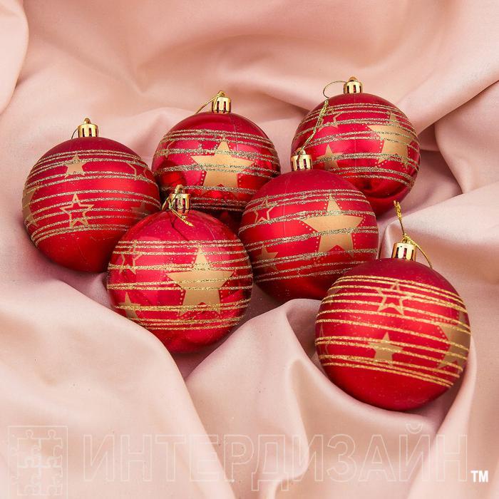 Набор шаров пластик d-8 см 6 шт Звездная мелодия красный 3259742