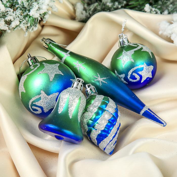 Набор украшений пластик 14 шт Двухцветие сине-зеленый 3276669