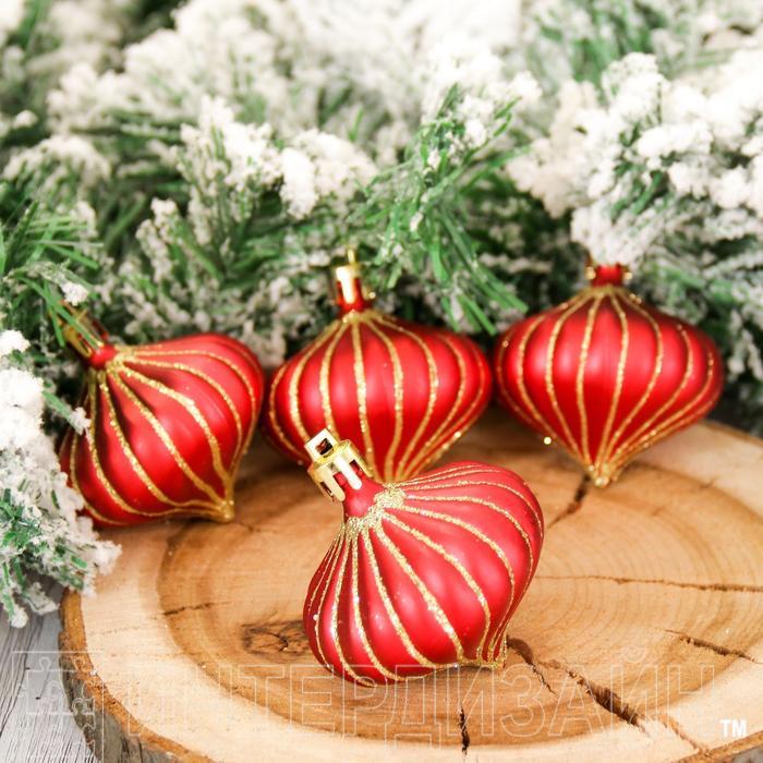 Набор украшений пластик 5,5 см 4 шт луковица полосы красный 2155314
