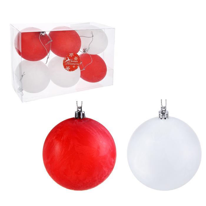 Новогодние шары Бело-красный туман (набор 6 шт.) - Описание