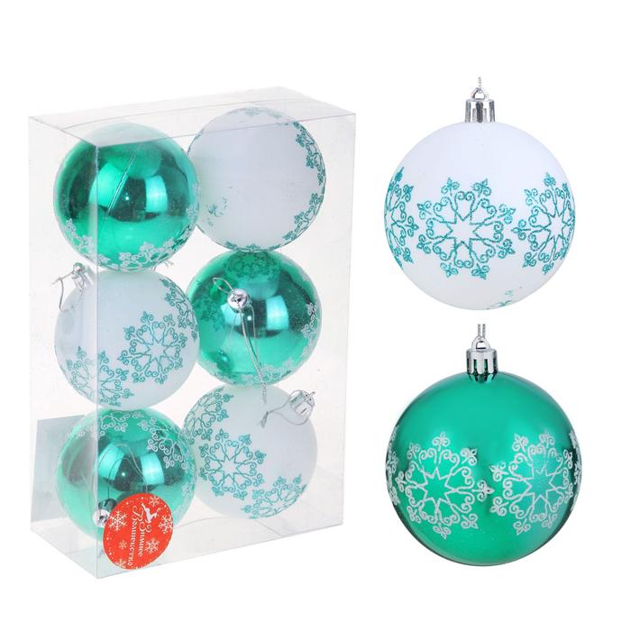 Новогодние шары Изумрудик (набор 6 шт.), резная снежинка 2131462