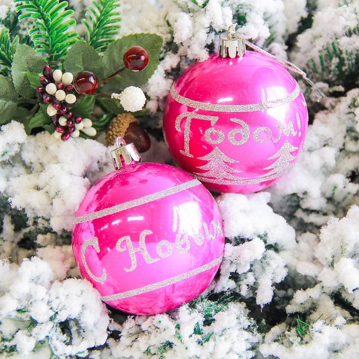 Новогодние шары С Новым годом (набор 6 шт.), розовые 2178215