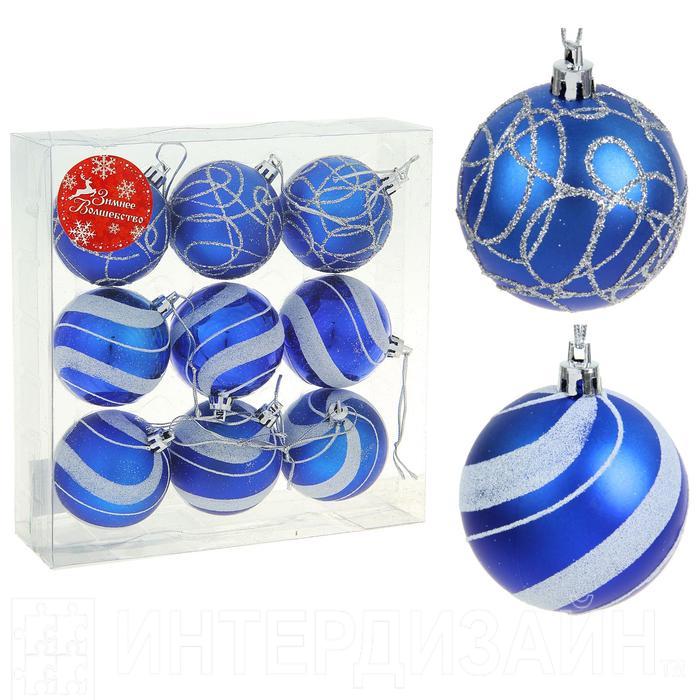 Новогодние шары Волны синие (набор 9 шт.) 1305747