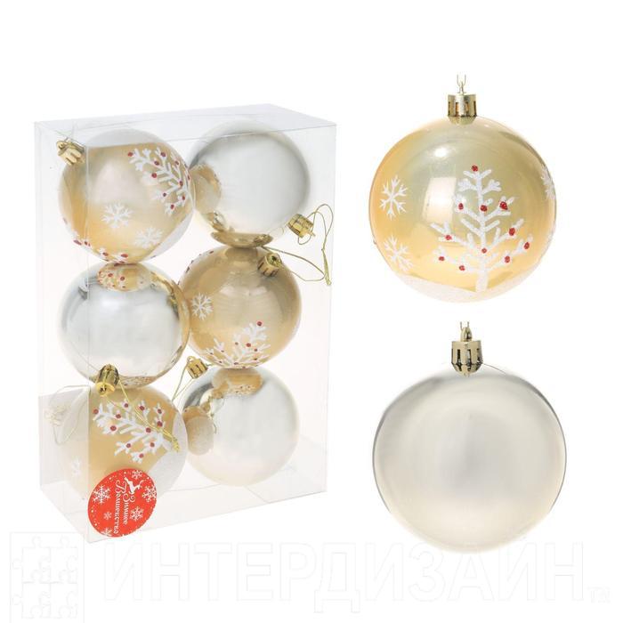 Новогодние шары Зимнее деревце (набор 6 шт.), золотые 2131324