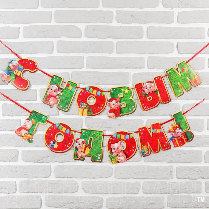 Гирлянда новогодняя "С новым 2019 годом!" на ленте. Набор 2 штуки 3371252С