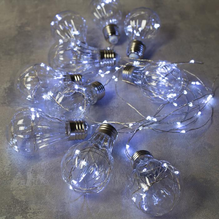 НИТЬ "Лампочки объемные" 10 шт, 100 LED-12V, адаптер в комплекте, БЕЛЫЙ - Описание