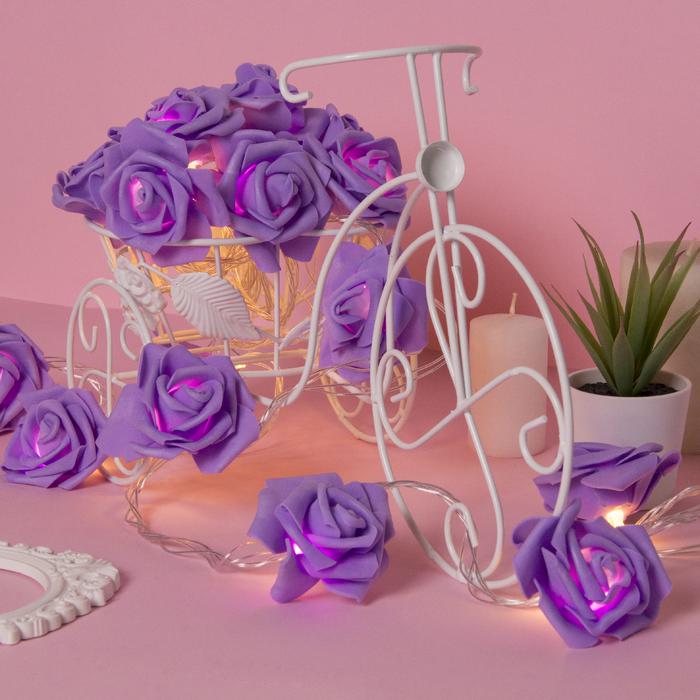 НИТЬ с насадками 5 м "Розы фиолетовые" 7 см, Н. С. УМС вилка, 20 LED-220V, фикс,ТЕПЛЫЙ БЕЛЫЙ - Описание