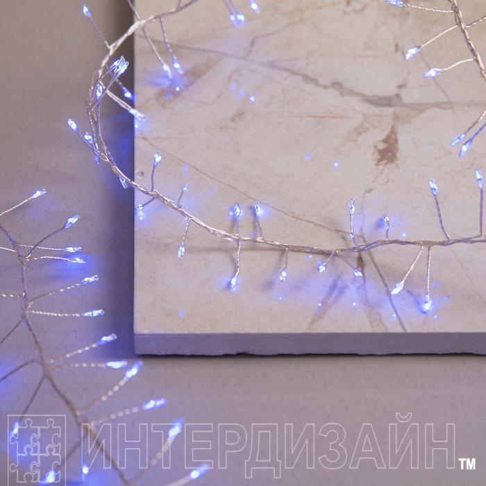 НИТЬ уличная, мишура роса, Д:2 м, Н.С. LED-200-4.5В, контр. 8 р., СИНИЙ - Описание