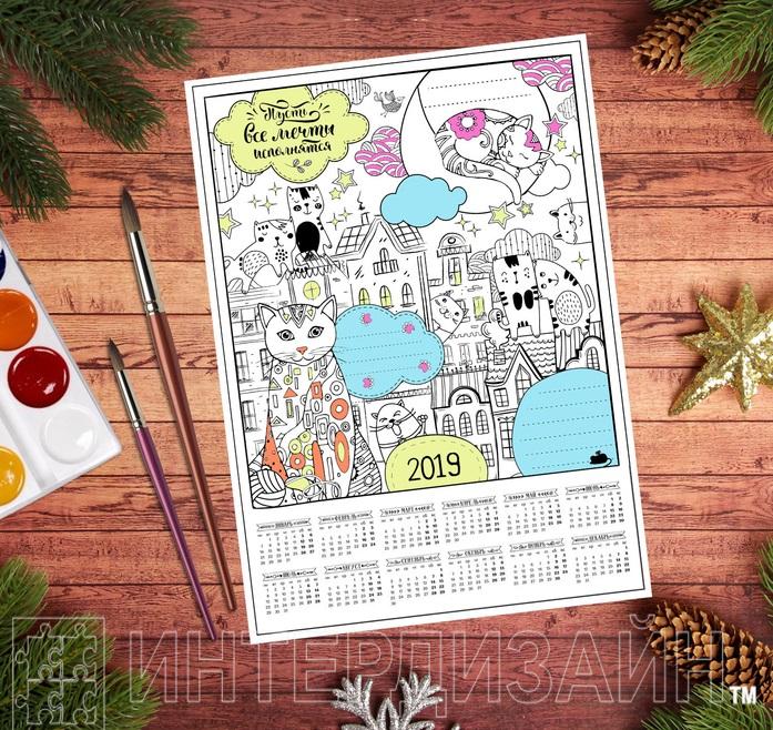 Раскраска антистресс, календарь "Котонастроение" набор 10 шт 3923075с