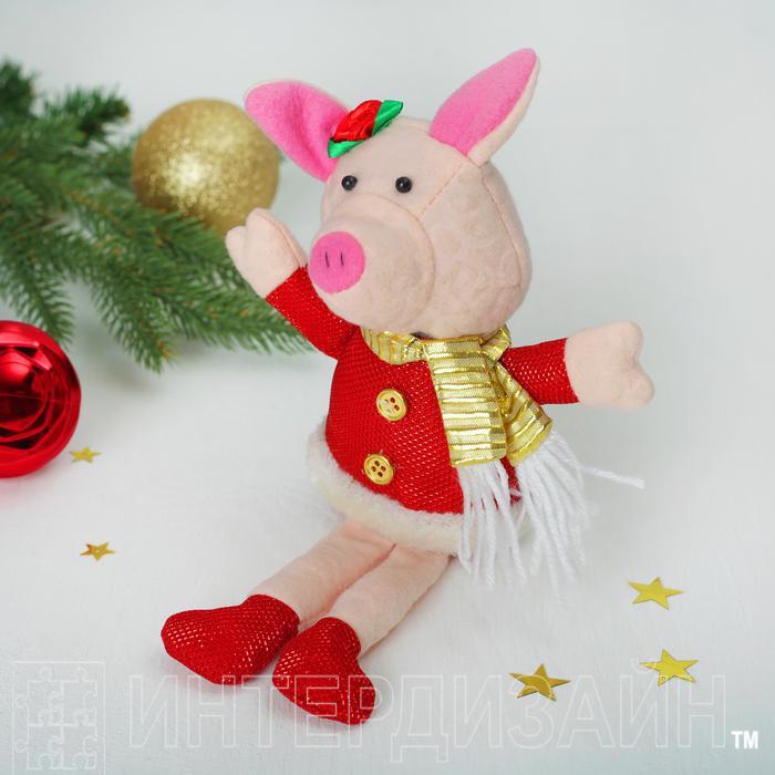 Мягкая игрушка "Хрюша в костюме Деда Мороза" на голове розочка 3467112С