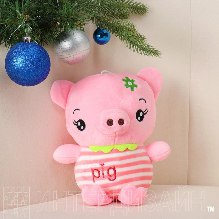 Мягкая игрушка "Свинка" на голове цветочек" цвета микс - Описание