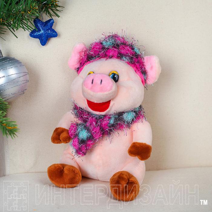 Мягкая игрушка "Свинка в вязаной шапочке и шарфе" 17 см 3138703С