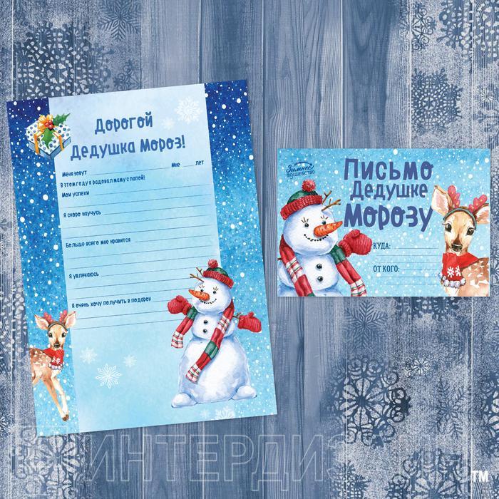 Письмо Деду Морозу "Снеговик и оленёнок" набор 6шт 3570458С