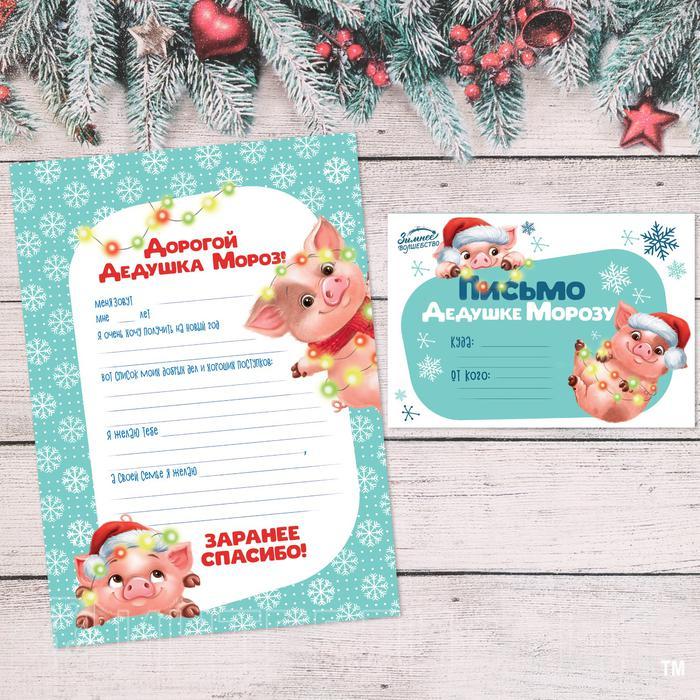 Письмо Деду Морозу "Свинки с гирляндой" набор 6шт - Описание