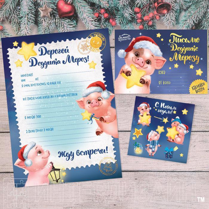 Письмо Деду Морозу с наклейками "Звёздные свинки" набор 20шт 3570437С