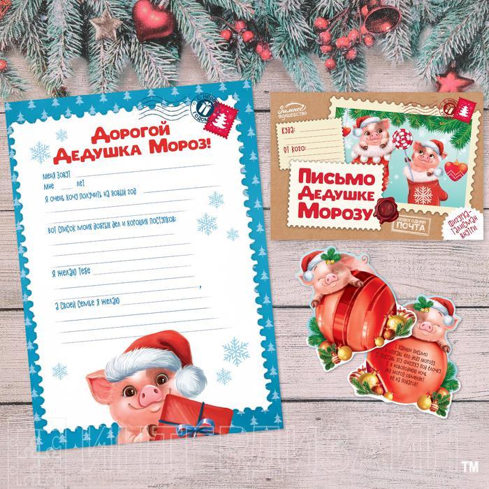 Письмо Деду Морозу с талисманом "Свинка на шаре" набор 20шт 3570463С