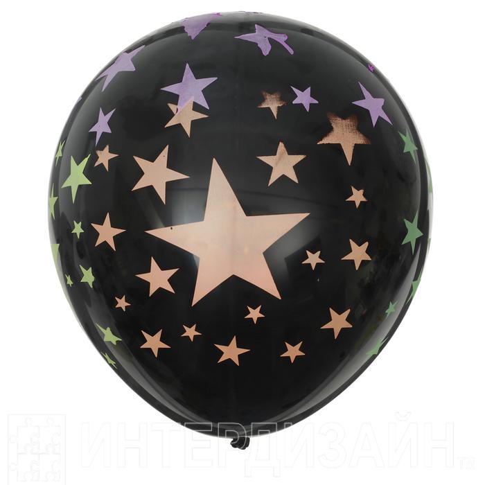 Шар латексный 17" "Звезды неон", 1 шт., цвет черный 3530228С