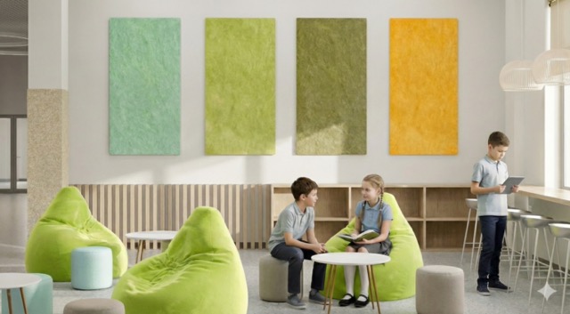 Дизайнерские решения из эко-войлока сделаны из экологичного шумоизоляционного материала. Это очень важно для создания комфортной среды в учебных учреждениях.