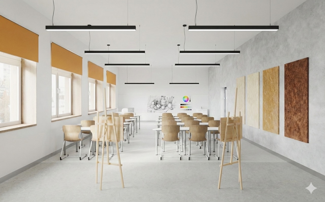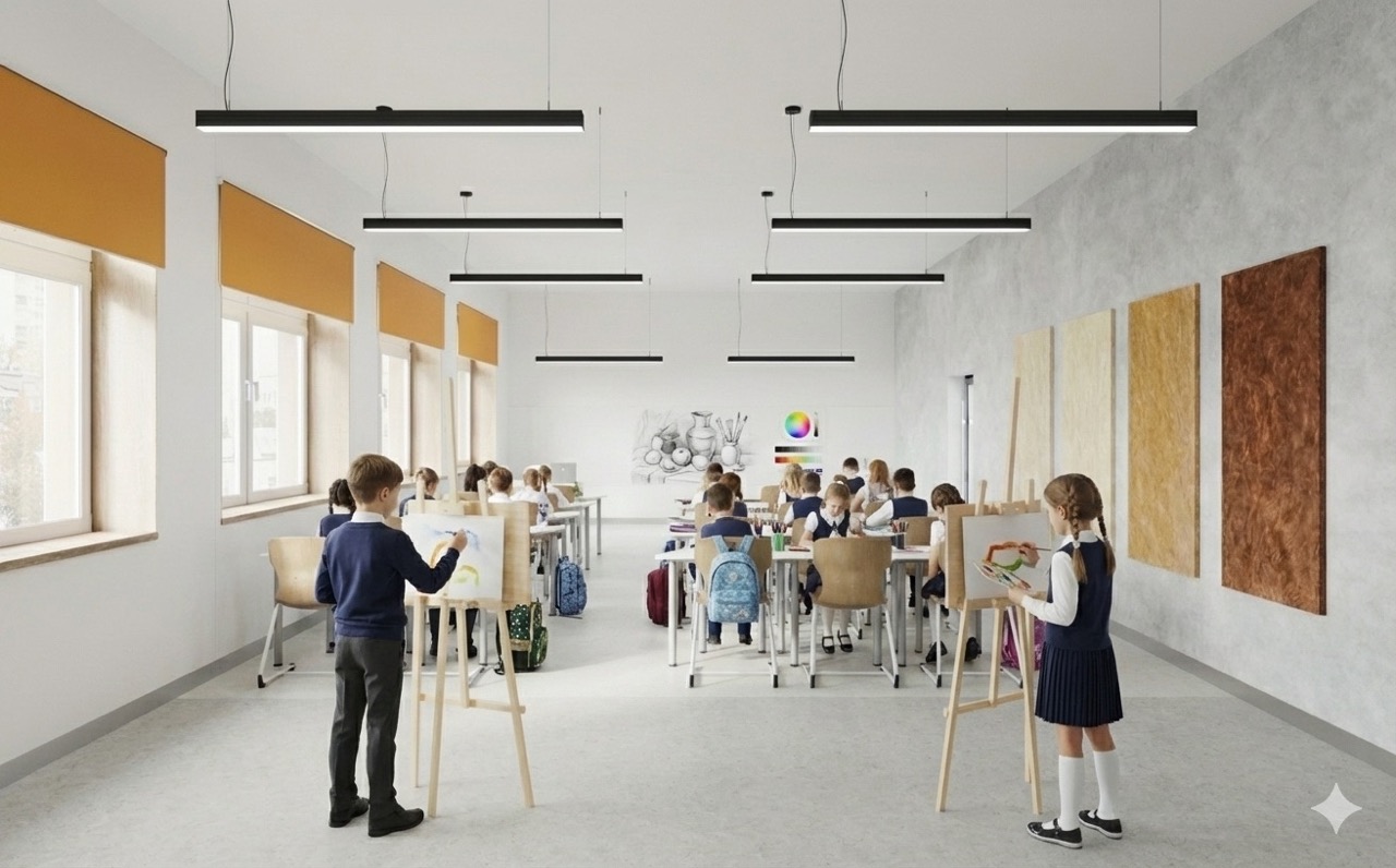 Дизайнерские решения из эко-войлока сделаны из экологичного шумоизоляционного материала. Это очень важно для создания комфортной среды в учебных учреждениях.