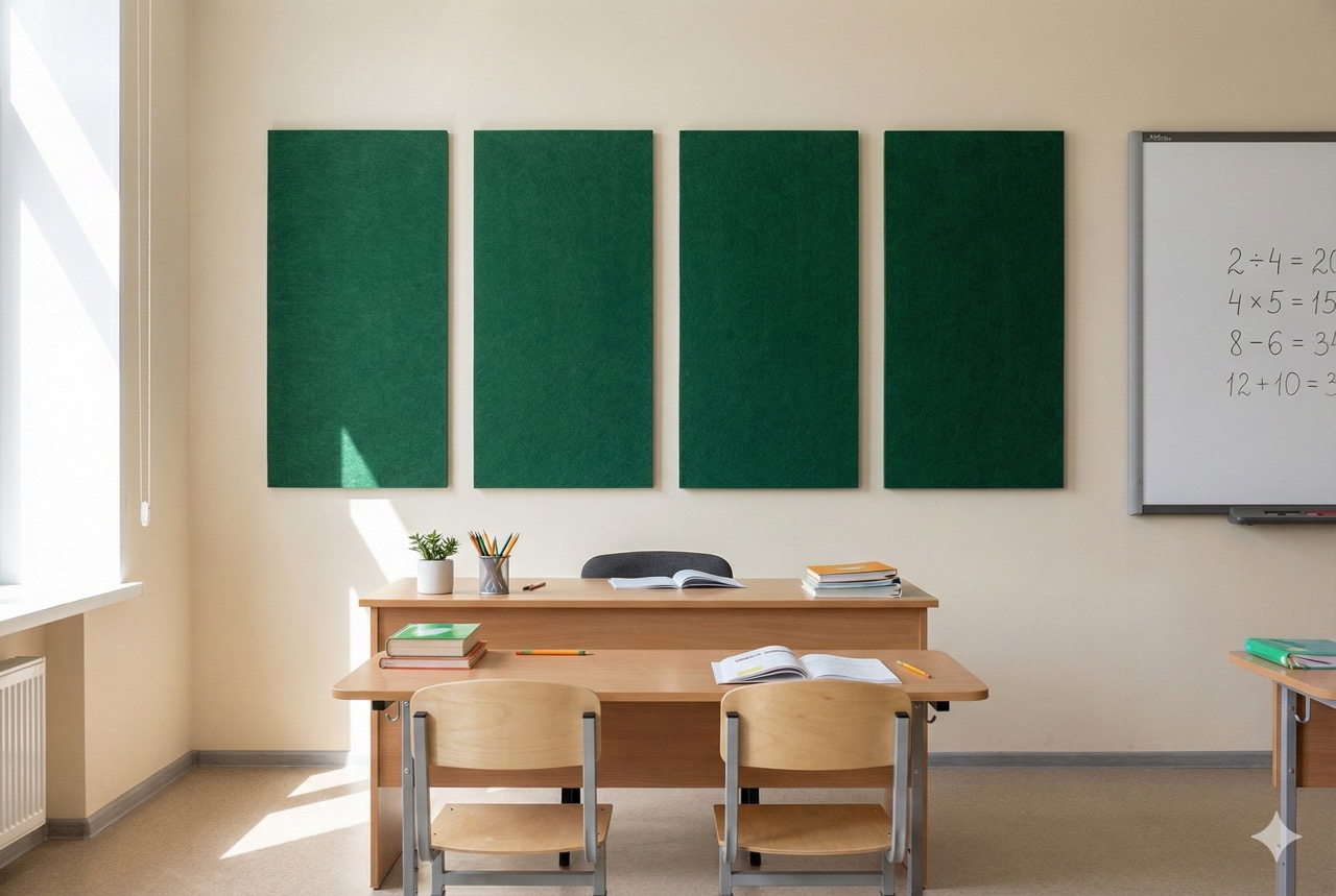 Дизайнерские решения из эко-войлока сделаны из экологичного шумоизоляционного материала. Это очень важно для создания комфортной среды в учебных учреждениях.