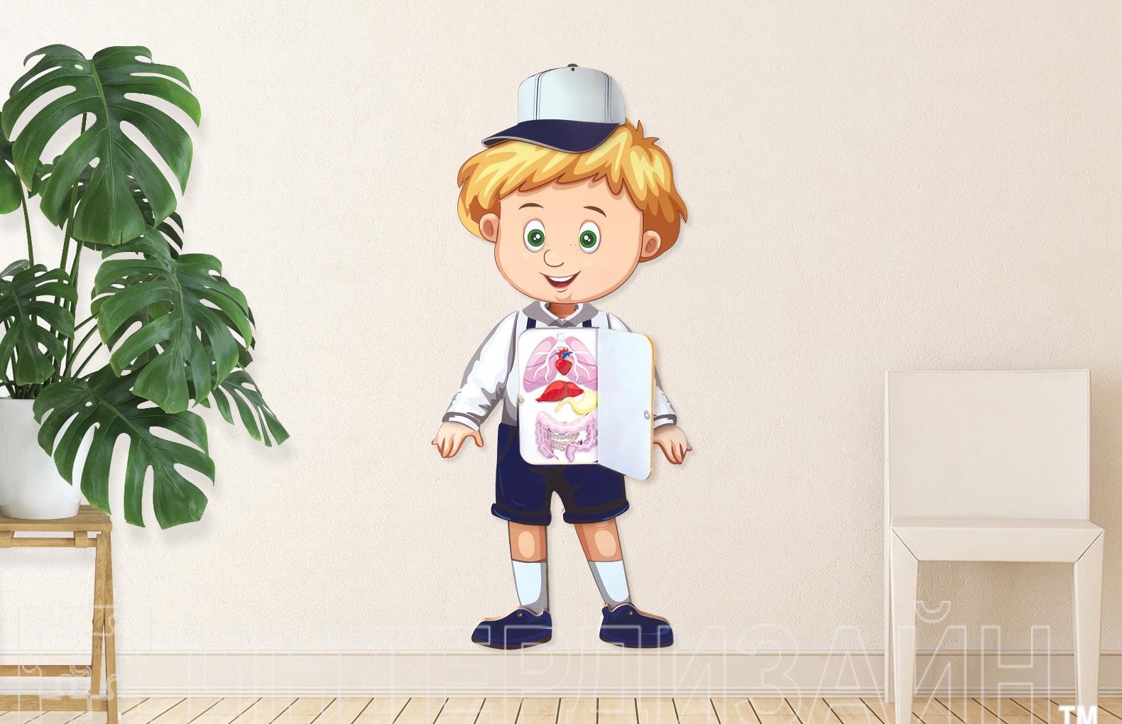 Обратите внимание, что сам образ мальчика отлично вписывается в атмосферу и интерьер детского сада, украшает его и создает уют.